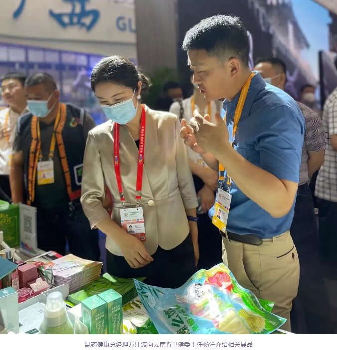 7日上午,云南省省长王予波率团参观博览会各展区,并专程前往云南展区了解云南参展情况。在昆药集团展区前,昆药健康总经理万江波向王予波省长汇报了昆药集团在皮肤护理和口腔护理两大健康消费领域的创新进展。昆药健康作为昆药集团大健康创新平台,经过五年多的研究探索,成功将三七应用于皮肤护理和口腔护理领域,并取得了突破性进展。