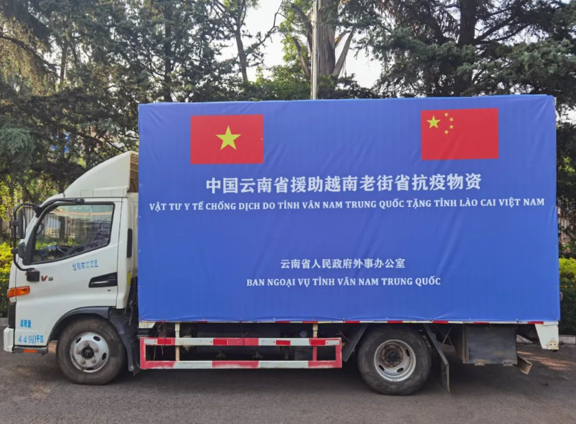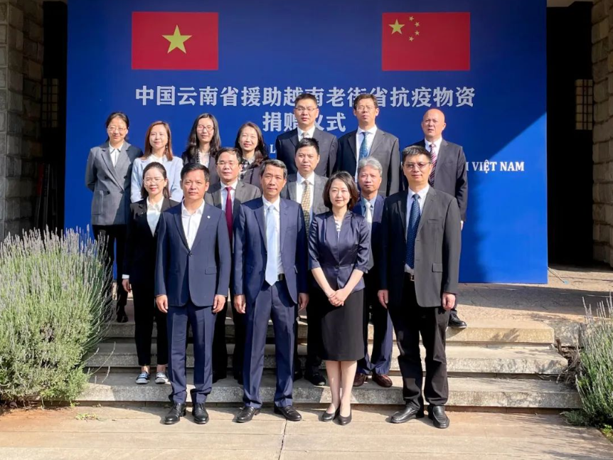 4月29日,中国云南省向越南老街省援助抗疫医疗物资捐赠仪式在云南省人民政府外事办公室举行。云南省人民政府外事办公室主任杨沐,越南驻昆总领事阮忠孝,昆药集团总裁钟祥刚共同出席本次捐赠仪式。