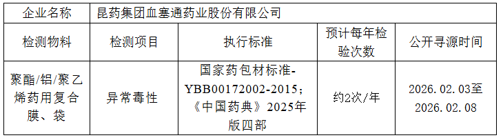 昆药集团血塞通药业股份有限公司包装材料检测服务公开寻源