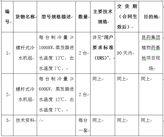 昆药集团植物药基地项目螺杆式冷水机组设备采购招标公告