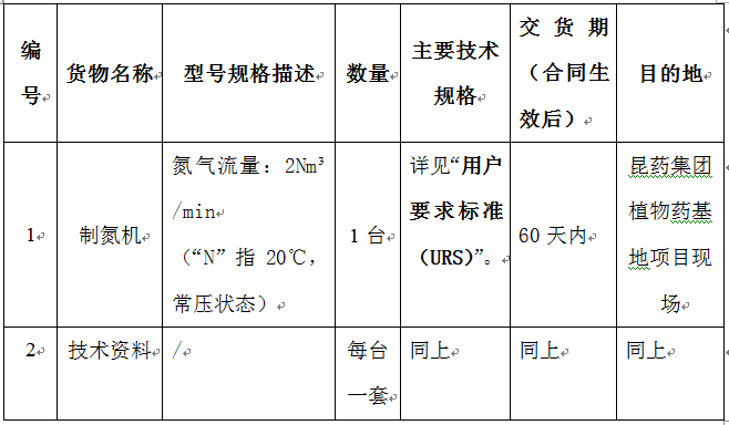 昆药集团植物药基地项目制氮机设备采购招标公告