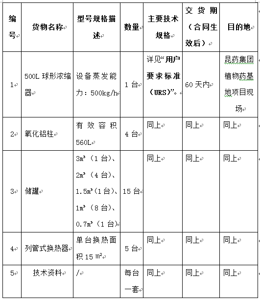 昆药集团植物药基地项目不锈钢储罐等设备采购招标公告