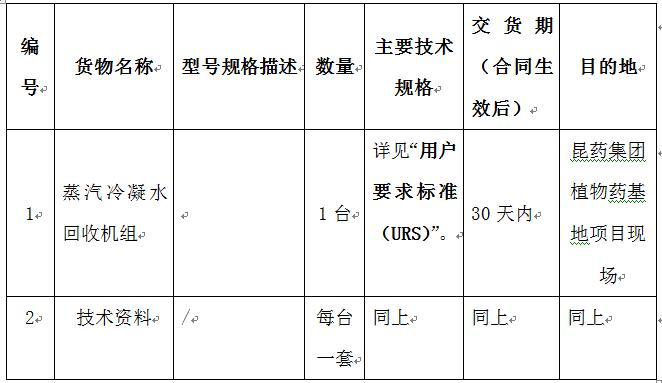 昆药集团植物药基地项目蒸汽冷凝水回收机组设备采购招标公告