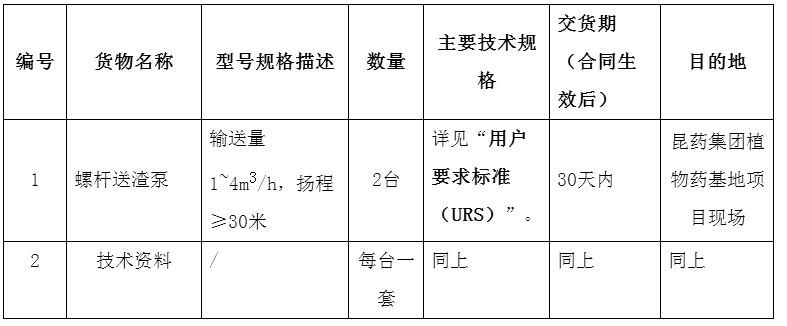 昆药集团植物药基地项目螺杆送渣泵设备采购招标公告