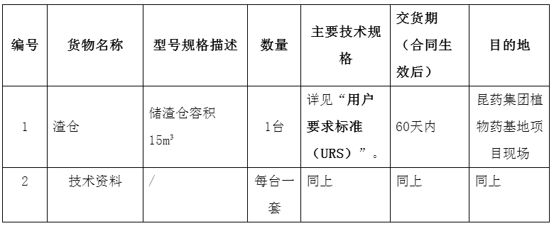 昆药集团植物药基地项目渣仓设备采购招标公告