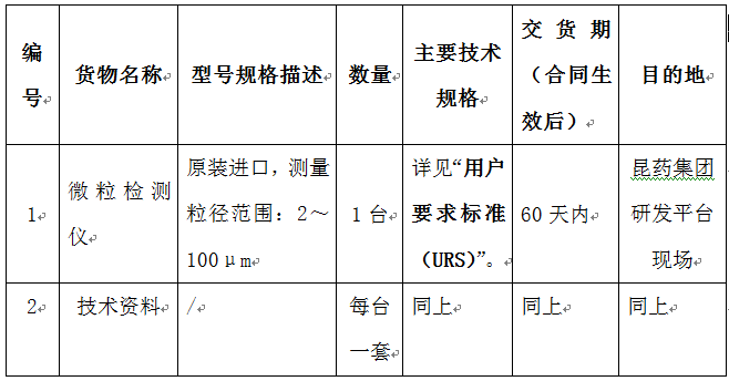 昆药集团质量平台微粒检测仪设备采购招标公告