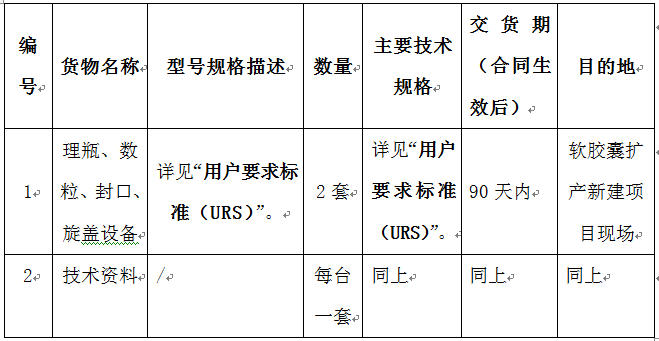 昆药集团软胶囊扩产新建项目理瓶、数粒、封口、旋盖设备采购招标公告