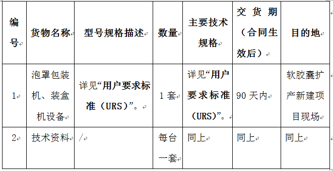 昆药集团软胶囊扩产新建项目泡罩包装机、装盒机设备采购招标公告