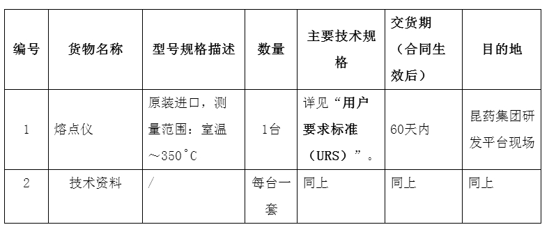 昆药集团研发平台熔点仪设备采购招标公告