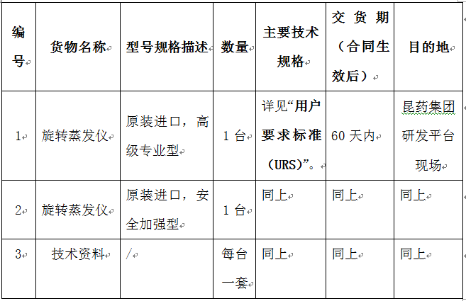 昆药集团研发平台旋转蒸发仪设备采购招标公告