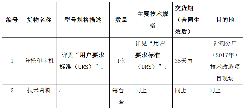 昆药集团针剂分厂(2017年)技术改造项目分托印字机设备采购招标公告
