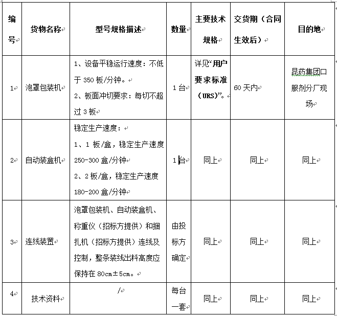 昆药集团口服剂分厂项目泡罩包装线设备采购招标公告