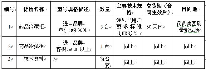 昆药集团质量部药品冷藏柜设备采购招标公告