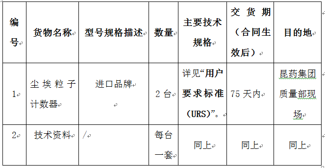 昆药集团质量部尘埃粒子计数器设备采购招标公告