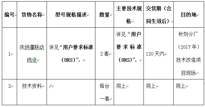昆药集团针剂分厂(2017年)技术改造项目洗烘灌联动线设备采购招标公告