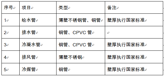 管道系统基本设计寿命≥15 年,管道除考虑承受压力和温度变化外,还需考虑腐蚀、磨损、震动等因素的影响。材料:制冷管液管、吸入管、排出管应为铜管,管线为钎焊。所有管路的壁厚必须满足最大工作压力且按照承压标准提供,需留有足够的安全系数。” 管道连接:管道连接方式由投标人设计,管道允许采用焊接方式,但必须在合适的位置设置可检修的接头,其中管道与阀门、调节装置等处连接应该采用可拆卸式连接,以便今后维护时可以检修拆卸和更换阀门,管道的连接装置必须保证系统的密闭性,且经过检漏。雇主不接受为降低成本将连续的短管拼接成长管的焊接管道。