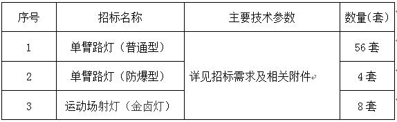 备注:1.招标人在授标时有变更数量的权利,实际数量与合同签订数量为准。