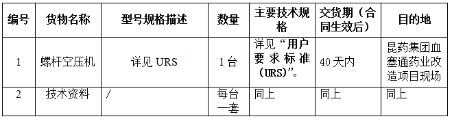 昆药集团血塞通药业螺杆空压机设备采购招标公告