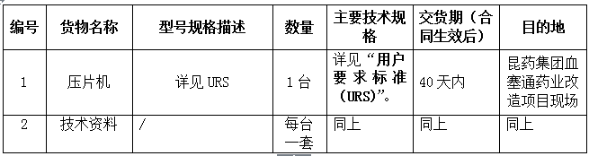 昆药集团血塞通药业压片机设备采购招标公告
