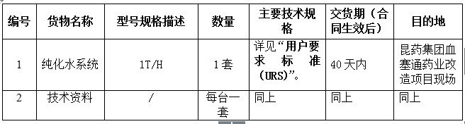 昆药集团血塞通药业纯化水系统设备采购招标公告