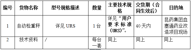 昆药集团血塞通药业自动检重秤设备采购招标公告
