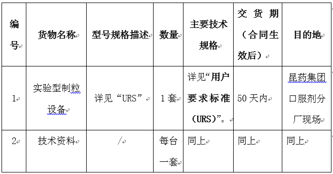 昆药集团口服剂分厂实验型制粒设备采购招标公告
