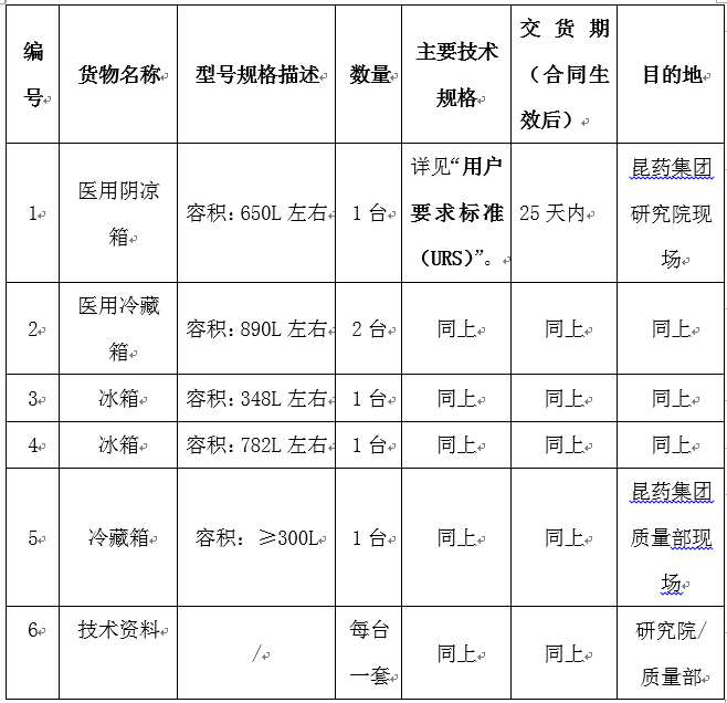 昆药集团研究院医用冷藏箱及低温冰箱等设备采购招标公告