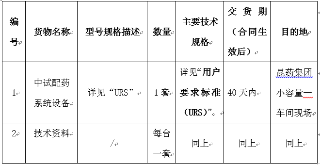昆药集团股份有限公司就研究院中试配药系统设备采购(招标编号:YJY-SB-2018-002)对外进行公开招标,按照“公开、公平、公正、科学、择优”的原则选择中标人,欢迎符合条件的投标人持相关资料前来报名,现就有关事项公告如下: