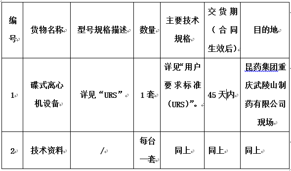 昆药集团重庆武陵山制药有限公司碟式离心机设备采购招标公告