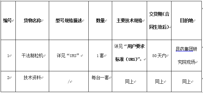 昆药集团研究院干法制粒机设备采购招标公告