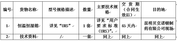 昆明贝克诺顿制药有限公司恒温恒湿箱采购招标公告