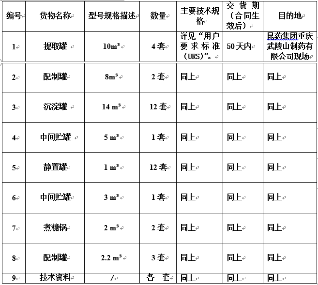 昆药集团重庆武陵山制药有限公司麻芩项目罐类设备采购招标公告