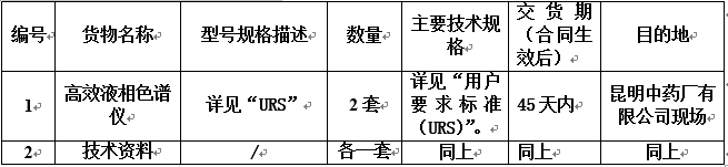 昆明中药厂有限公司高效液相色谱仪采购招标公告